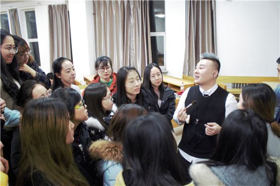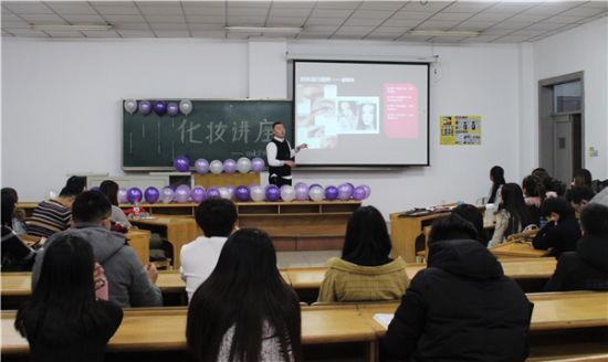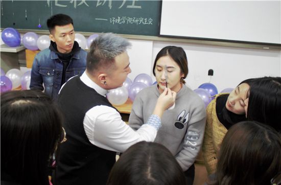 2017年12月26日晚,由在线成人 研究生会“似水研华”工作组举办的求职妆容礼仪培训在二校区主楼B201成功举行。沐雅美妆学校的创始人姜楠和他的团队受邀为研究生们培训求职妆容礼仪及相关知识。