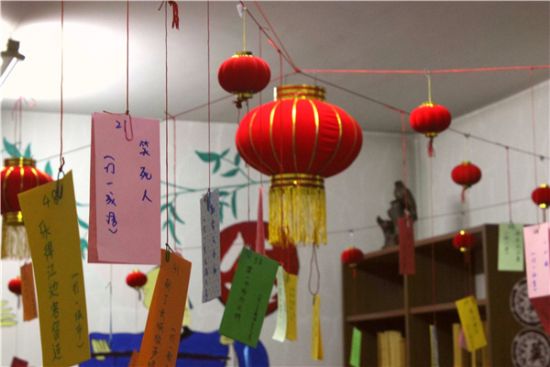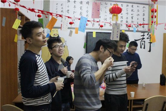 元宵节是中华民族的传统节日,这一天人们吃元宵、猜灯谜、赏花灯,共同度过这个团圆的节日。当晚,六公寓的阿姨们先为同学们端上了热腾腾的元宵,同学们围坐在一起,共同品尝着美味的元宵,谈笑宴宴,其乐融融。之后进入了猜灯谜环节。一个个五颜六色的灯谜挂在红红的灯笼上,灯谜涉及的种类丰富多彩,既有传统的猜字、猜成语,也有比较新颖的猜地名、猜明星等。一开始同学们面对灯谜都有些摸不着头脑,但通过传统的拆字、会意、数笔画等技巧,相互探讨,充分发挥想象力,难解的灯谜也渐渐地有了头绪。随着难题被一个个攻破,同学们也获得了小灯笼、小铃铛等作为奖励,现场一直洋溢着欢乐祥和的气氛。