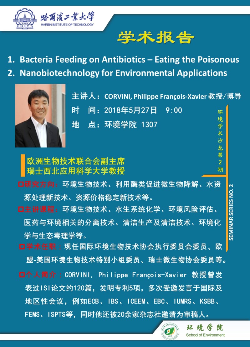 欧洲生物技术联合会副主席,瑞士西北应用科学大学教授CORVINI, Philippe François-Xavier 教授将于2018年5月27日访问在线成人 并进行学术交流,欢迎全校感兴趣的师生参加。学术讲座信息如下: