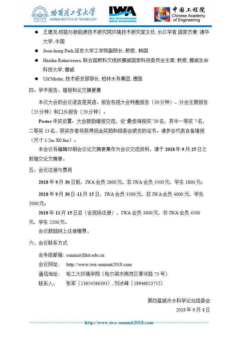 第四届城市水科学论坛暨中国工程科技论坛第二轮会议通知