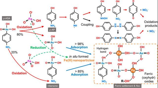 高铁酸盐氧化对氨基苯胂酸的反应路径示意图