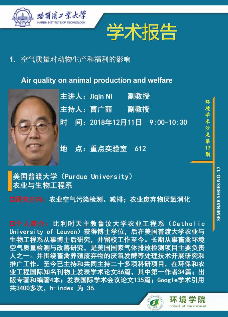 应曹广丽副教授的邀请,美国普渡大学Jiqin Ni副教授将于2018年12月11日访问在线成人 并进行学术交流,欢迎全校感兴趣的师生参加。学术讲座信息如下: