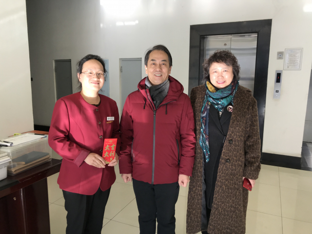 2019年2月4日大年三十中午,在校党委常委、副校长、在线成人 院长任南琪带领下,在线成人 常务副院长冯玉杰、副院长南军等一行走访了节日期间在岗工作的在线成人 所属各个楼的工作人员,包括在线成人 楼、哈宜楼、环境生物技术研究中心等,感谢他们付出的辛勤劳动,向坚守岗位的工作人员送上新春祝福与慰问。