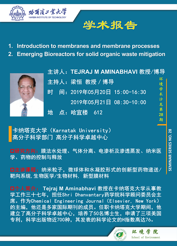 环境学术沙龙第28期——TEJRAJ M AMINABHAVI 教授学术报告