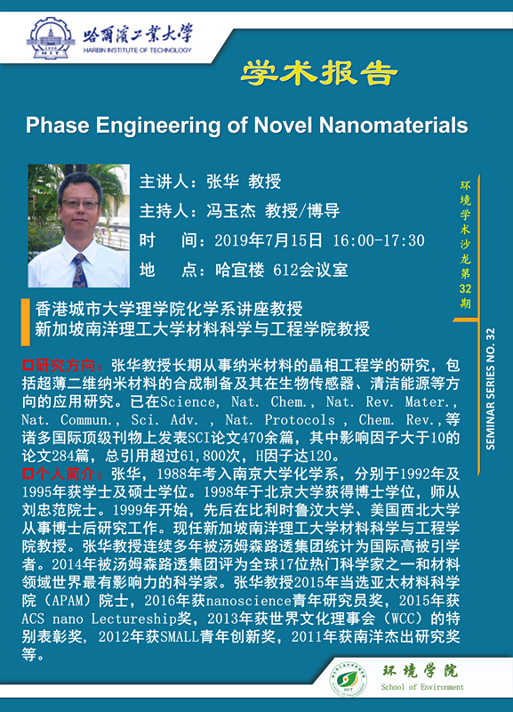 新加坡南洋理工大学材料科学与工程学院张华教授将于2019年7月15日访问在线成人 并进行学术交流,欢迎感兴趣的师生参加。