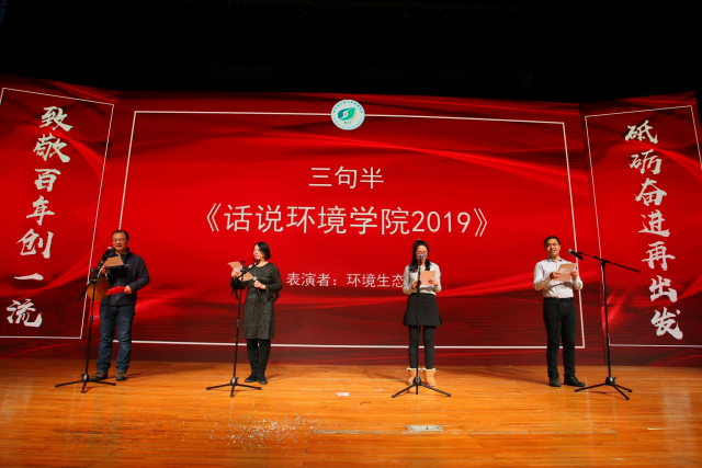 节目表演环节,学工办、啦啦队共同带来了舞蹈《火红的萨日朗》和《野狼disco》,19硕3个团支部共同带来了环保时装秀表演,国家水中心带来了歌曲联唱《强国一代有我在》《我在黑龙江等你》,环境规划与管理系和环境生态系带来了京剧《霸王别姬》、小合唱《母亲的微笑》,环境生态系带来了三句半《话说在线成人 2019》,市政工程系带来了小合唱《歌声与微笑》,实验中心赵贞带来了独唱《岁月》,环境科学系带来了诗朗诵《乡愁》、歌曲《故乡的云》,环境工程系带来了小合唱《那些花儿》,2018硕学生林威带来了歌曲串烧《在芒种的好日子里刚好遇见年轻的你在左手指月》,本硕博学生代表带来了八百壮士情景剧,院系领导带来了诗朗诵《光的追寻》,环境规划与管理系带来了意大利歌曲《柔声倾诉》,全体新入职教职工带来了歌曲《倔强》,2020届本硕博毕业生代表带来了情景剧《黄河路73号的日子》,将晚会一次次推向高潮。晚会在全场合唱《我和我的祖国》《哈工大之歌》中宣告结束。