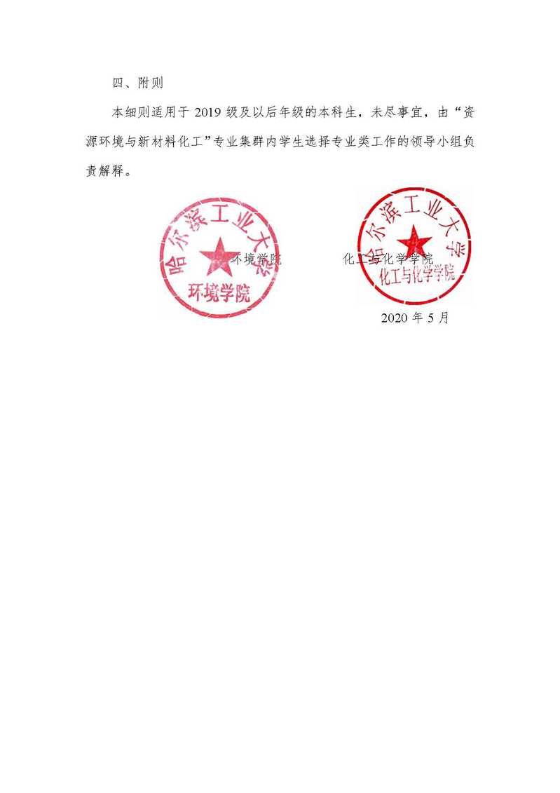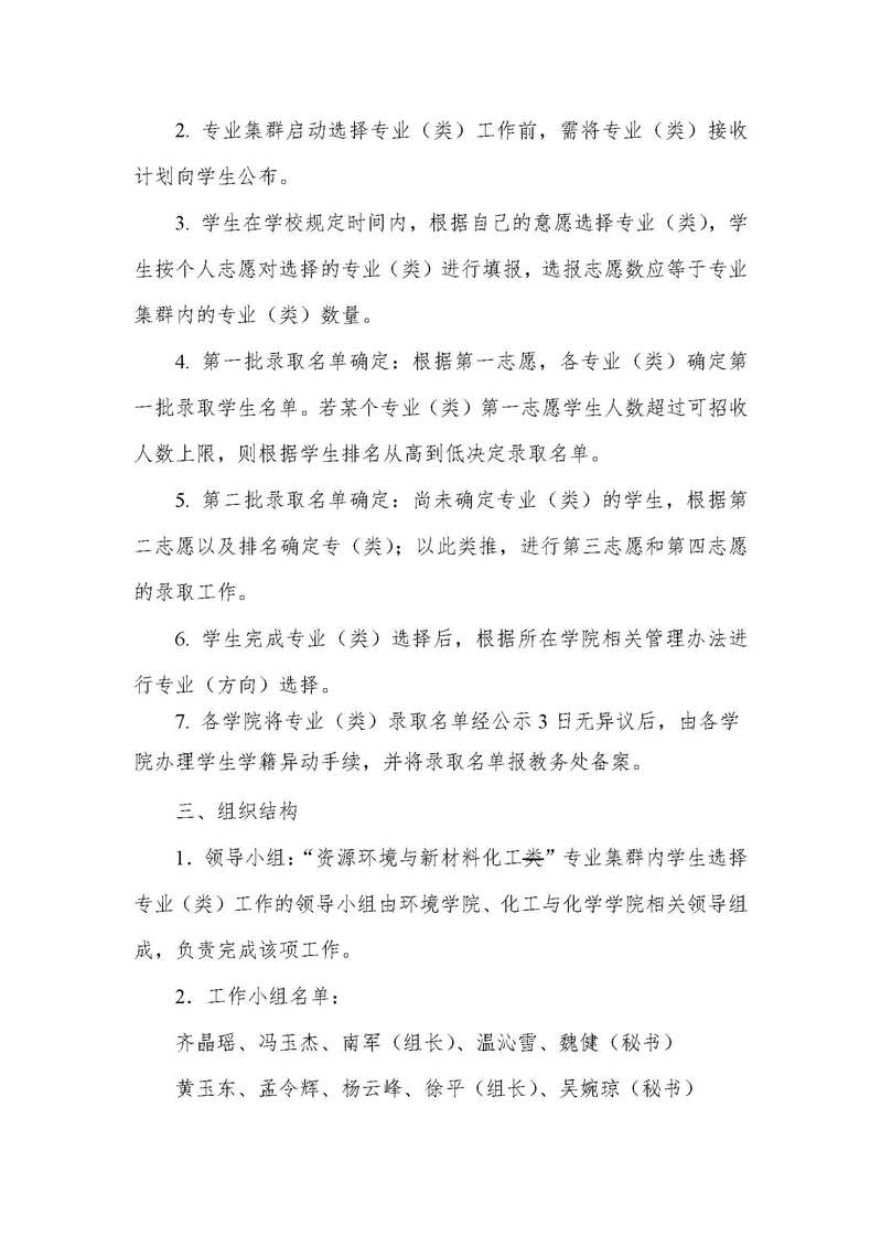 工科试验班(资源环境与新材料化工)专业集群内学生选择专业(类)实施细则
