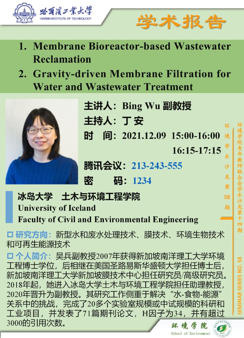 冰岛大学土木与环境工程学院Bing Wu副教授将于2021年12月9日与在线成人 师生进行学术交流,欢迎感兴趣的师生参加线上学术报告会。