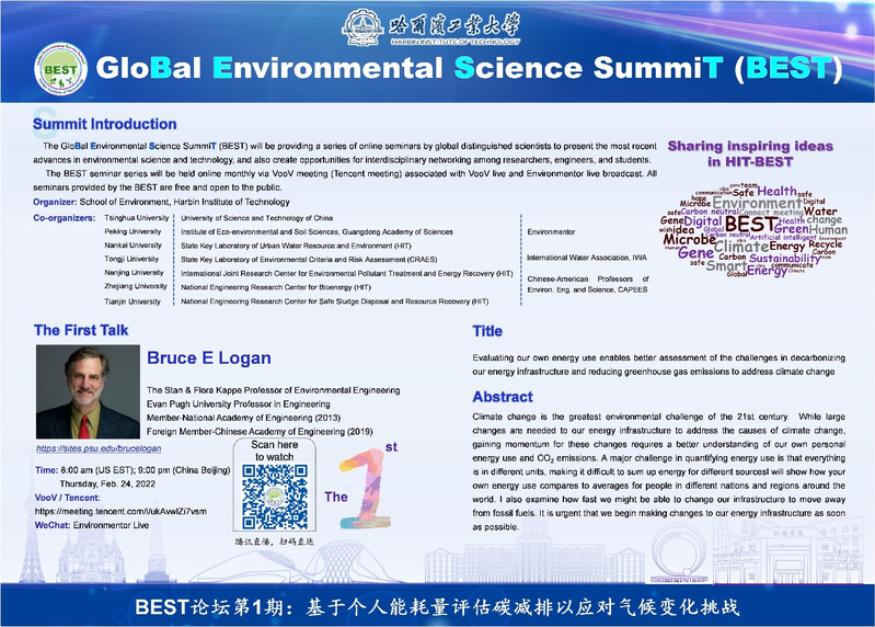 BEST的邀请,BEST第一讲将由来自宾夕法尼亚州州立大学的Bruce E Logan教授进行