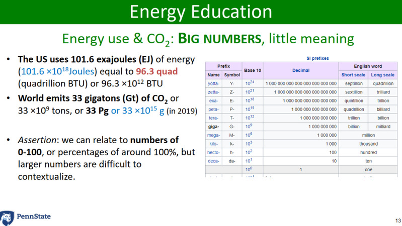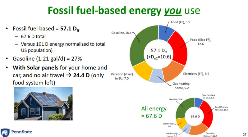 人是政策的制定者与执行者,个人生存活动与能耗息息相关,进而影响气候变化。Bruce E. Logan教授指出“在应对气候变化挑战方面,每一个环境工作者都有责任发挥先锋作用”,应寻求更好的方法引导民众了解当前现状,并解析未来的发展方向。这里Bruce logan教授以美国的相关数据为例进一步展开阐述,阐释与能耗相关的庞大数字的含义,并提出“关注并理解个人能耗是解决气候变化的关键动力之一”的重要观点。