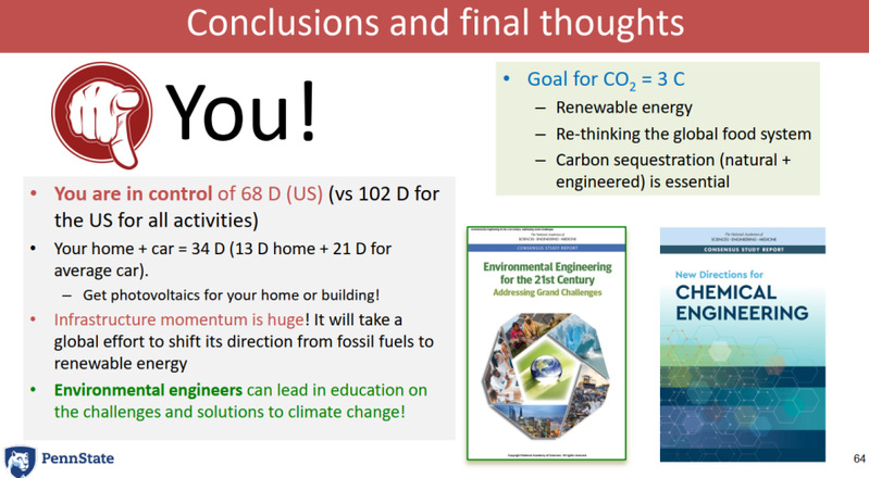 Bruce E. Logan教授对本次讲座进行了总结,强调了对个人能耗的计算在应对气候变化中的重要意义;指出了利用太阳能、风能等清洁可再生能源替代传统能源的重要性及迫切性;并呼吁从自身做起,发挥个人动力作用,共同致力于能源结构的转变,助力碳减排,共同应对气候变化这一全球性问题。