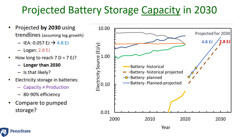 随后,Bruce Logan教授以个人家庭为例,指出每个家庭依靠太阳能而获得的电能与电量的消耗是随季节变化的,那么就引发一个问题,如何实现能量的长期有效储存?使得能够实现夏季储存的能量供冬季使用?因此,实现能量的存储是亟待解决的问题,也是实现能源结构转变的另一重要动力预测通过电池储电,到2030年储能可能达到2.8 EJ。迄今,美国乃至全世界最常用储电方式为抽水蓄能水电PSH方式,但其电能利用效率仅为75%,因此在提升利用效能方面仍需作出努力。
