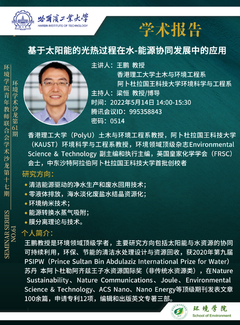 香港理工大学教授、阿卜杜拉国王科技大学教授王鹏老师将于2022年5月14日在线成人 师生进行学术交流,欢迎感兴趣的师生参加线上学术报告会。