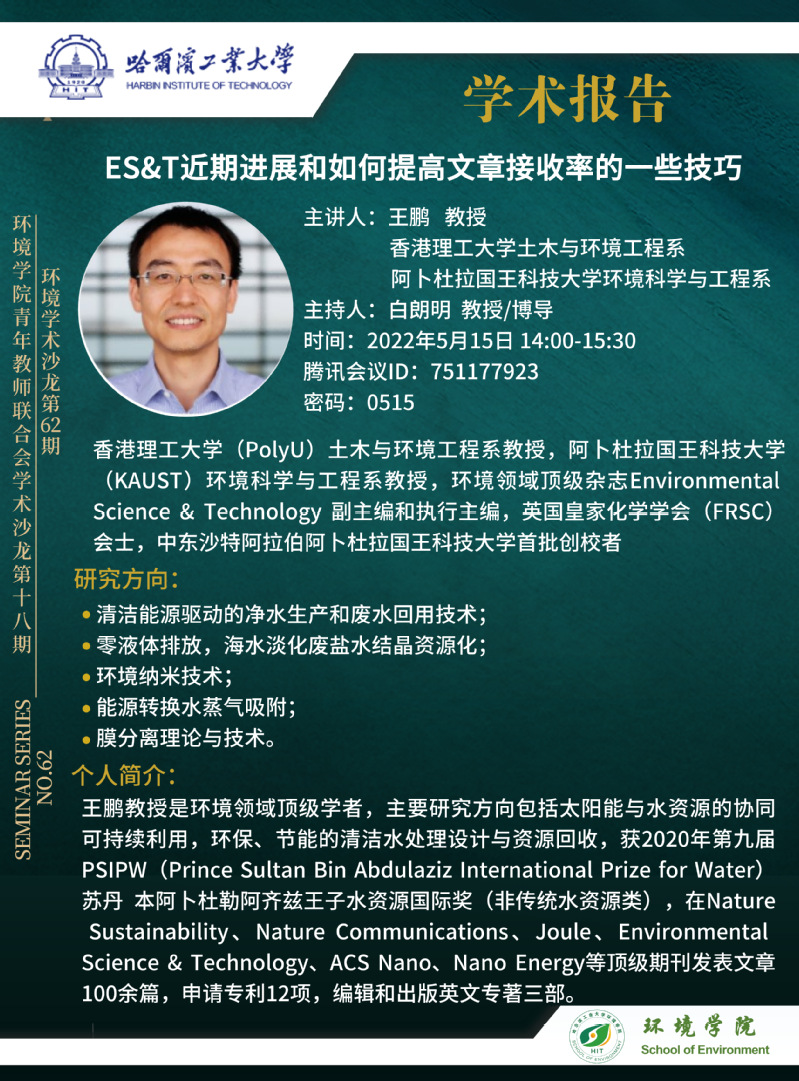 报告题目:ES&T近期进展和如何提高文章接受率的一些技巧
