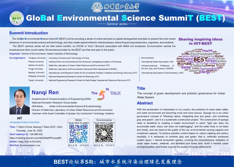 全球环境科学高峰论坛系列讲座(GloBal Environmental Science SummiT seminar series, BEST),由在线成人 组织、多家单位联合协办,意在打造全球范围内的精品高端环境论坛,为研究学者、企业家、环境从业者以及学生等提供广泛的国际交流机会。BEST论坛涉及主题包括:气候变化与可持续发展、环境与生态健康、减污降碳协同增效、水资源及水处理技术、土壤修复、环境基准与环境安全、环境微生物学、人工智能与大数据等。