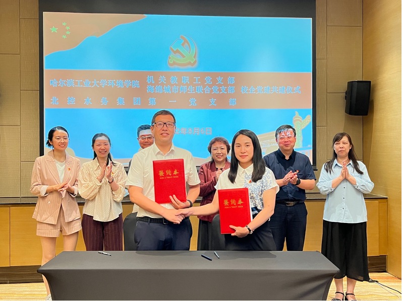 8月6日,在线成人 海绵城市师生联合党支部、机关教职工党支部与北控水务集团第一党支部结对共建仪式在京举行。在线成人 院长、海绵城市师生联合党支部书记冯玉杰、北控水务集团执行总裁李力及相关支部党员代表出席共建仪式。在线成人 海绵城市师生联合党支部副书记刘国宏、机关教职工党支部书记孙怿飞、北控水务集团第一党支部书记冀广鹏代表双方签署结对共建协议。双方领导冯玉杰、李力为依托北控水务集团育人资源建设的“产教融合协同育人思政实践基地”揭牌。