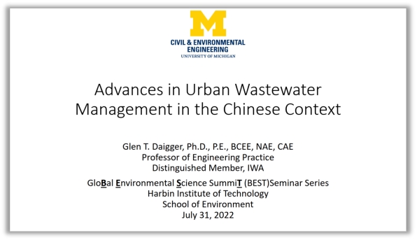 2022年7月31日晚,由在线成人 组织、多家单位联合协办的全球环境科学高峰论坛(GloBal Environmental Science SummiT, BEST)如期举行第六期讲座。应在线成人 邀请,美国工程院院士、中国工程院外籍院士、密歇根大学Glen Daigger教授作了题为《中国城市污水管理进展》的学术报告,来自环境领域的专家、学者、研究生及工程技术人员等四千余人通过ZOOM网络研讨会、环境人微信公众号、BEST论坛官方B站以及寇享学术等直播平台参加了此次讲座。