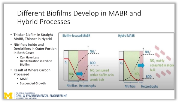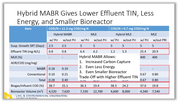 Glen教授介绍了两种MABR的应用模式,并重点阐述了混合式MABR集成于活性污泥法工艺中所产生的有益效果。混合式MABR系统可进一步提高对碳的捕获率,进一步减少能耗,进一步减小反应器体积,进一步降低出水TN浓度。