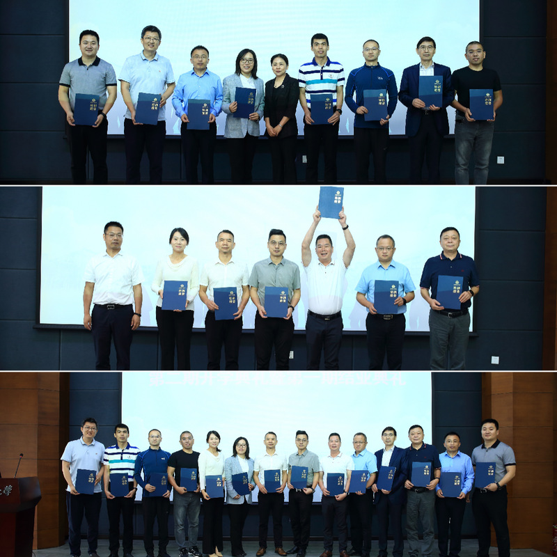 喻庆勇在致辞中对一期班学员顺利毕业表示祝贺,并和大家一起回顾了三年的学习期间鉴证的哈工大建校百年校庆、建党百年等国家及学校的高光时刻。孙慧丽书记、喻庆勇常务副院长为一期班学员逐一颁发结业证书,并合影留念。