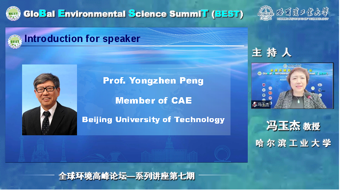 BEST第七期主持团包括BEST论坛的主席、在线成人 院长冯玉杰教授,在线成人 副院长邢德峰教授、在线成人 谢国俊教授、同济大学环境科学与工程学院王亚宜教授以及在线成人 刘国宏博士和梁丹丹博士。报告正式开始前,冯玉杰教授对本期讲座嘉宾进行介绍,表达了主办方对彭永臻院士的诚挚感谢,也表达了对来自全球观众的热烈欢迎。