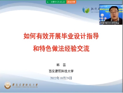 会议邀请了在线成人 卓越工程师学院副院长魏亮亮教授、同济大学陆斌教授、西安建筑科技大学教学质量监控与评估中心副主任韩芸教授,分享学生毕业设计实践经验。