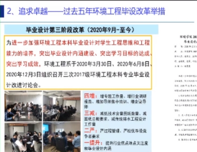 陆斌老师做了《同济大学环境工程专业毕业设计教学方法的探讨》的报告。详细介绍了同济大学毕业设计全过程,涵盖了毕业实习考核、专家座谈、开题报告撰写、图纸绘制、小组答辩等内容。针对高校毕业设计指导老师普遍缺乏工程经验、毕业设计工作量大指导教师精力不足等主要问题,提出了一系列改进措施。