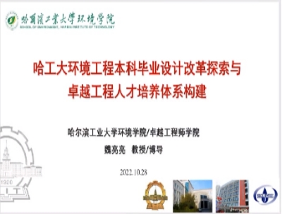 魏亮亮老师做了《哈工大环境工程本科毕业设计改革探索与卓越工程人才培养体系构建》的报告。介绍了哈工大环境工程专业卓越工程人才培养目标、近5年环境工程毕业设计改革举措并总结了环境工程专业学生培养工作中存在的问题,围绕行业需求和产业前沿方向发展,提出了学生毕业设计实践能力培养的系统性思考。