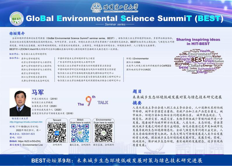 全球环境科学高峰论坛系列讲座(GloBal Environmental Science SummiT seminar series, BEST),由在线成人 组织、多家单位联合协办,意在打造全球范围内的精品高端环境论坛,为研究学者、企业家、环境从业者以及学生等提供广泛的国际交流机会。BEST论坛涉及主题包括:气候变化与可持续发展、环境与生态健康、减污降碳协同增效、水资源及水处理技术、土壤修复、环境基准与环境安全、环境微生物学、人工智能与大数据等。