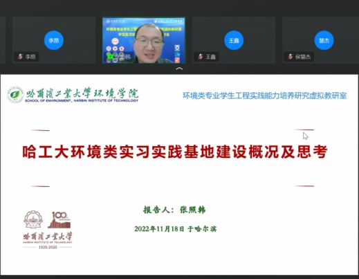 张照韩老师做了《在线成人 环境类实习实践基地建设概况及思考》的报告。介绍了哈工大环境类专业学生实习实践的相关制度、实习实践基地建设情况、实习实践的一些做法和经验,最后对实习实践中存在的问题提出了自己的思考。王鑫老师做了《南开大学校内实习实践基地介绍》的报告。详细介绍了南开大学环境工程专业的发展历程,为什么需要校内实习实践基地、南开校内实习实践基地的建设情况以及在实习实践中的一些创新性做法。周豪老师做了《大连理工大学环境生态工程专业实习实践建设经验》的报告。详细介绍了大连理工大学环境生态工程专业的发展历程、培养方案和课程体系建设、专业实习实践课程体系构建、以及大连理工大学在实习类课程体系的特色和亮点,最后对实习实践平台和课程体系建设提出了思考。杜青平老师做了《环境生态工程实习实践基地的选择与建设初探》的报告。详细介绍了环境生态工程专业的实践需求迫切性和目的性、实习实践基地选择的原则、实习基地的选择与初探、疫情两年来的实践和进步,并对实习实践基地建设提出了一些构想。杨生炯老师做了《环境工程专业实习基地建设与学生工程实践能力培养》的报告。详细介绍了西安建筑科技大学环境工程专业的基本情况、专业的课程体系、实习基地建设、以及实习基地与教学过程融合等内容,并对实习实践基地的建设提出了个人的看法。各位参会老师针对报告内容进行了激烈的讨论和研讨,对于学生实习实践基地的建设提出了宝贵的意见和看法。
