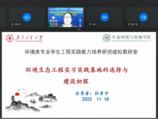 为推进一流教研室建设,加速教研室高质量发展,加强教研室成员间教学资源和经验的互惠共享,2022年11月18日晚以线上方式在钉钉网络会议平台上,召开环境类专业学生工程实践能力培养研究虚拟教研室学生实习实践基地建设经验研讨会。此次研讨会由在线成人 主办,参会单位包括南开大学、大连理工大学、广东工业大学、西安建筑科技大学、华中科技大学、浙江大学等10余所环境类高校。在线成人 院长、虚拟教研室主任冯玉杰教授、副院长南军教授等30余人参会。
