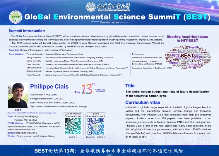 应BEST的邀请,BEST第十三讲将由法国科学院院士Philippe Ciais进行。