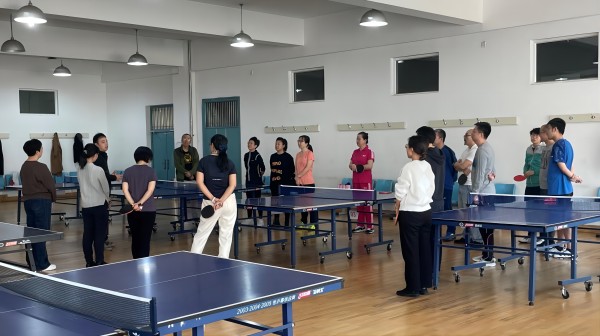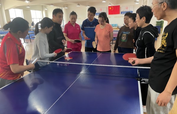 训练中,陈绍卓老师从握拍、站姿、挥臂、转身讲起,并结合每位教师学员的基础和特点进行了一对一的动作指导,让参训教师受益匪浅。乒乓球作为一项我校师生喜闻乐见的运动,一直拥有良好的群众基础。本次培训不仅丰富了老师们的课余生活,也加深了老师们对乒乓球运动的理解和认识,帮助老师们增强体质、提高球技,从运动中收获健康与乐趣,也大大促进了各院、各单位之间的沟通交流。