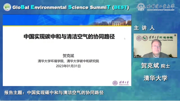 2023年1月31日晚,由在线成人 组织、多家单位联合协办的全球环境科学高峰论坛(GloBal Environment Science SummiT, BEST)系列讲座第十二期顺利举行。本期邀请了来自清华大学的贺克斌院士,贺克斌院士以“中国实现碳中和与清洁空气的协同路径”为主题进行了精彩报告。报告在腾讯会议、环境人微信视频号、BEST论坛官方B站、蔻享学术、邃瞳科学云、中国给水排水以及学说等网络平台同步直播,共计两万余名来自环境领域的专家、学者、研究生及工程技术人员参与了本次讲座。