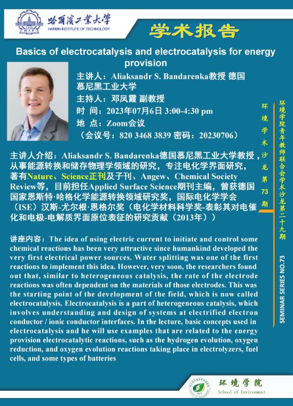 德国慕尼黑工业大学Aliaksandr S. Bandarenka教授将于20237月67月137月27与在线成人 师生进行系列学术交流,欢迎感兴趣的师生参加线上学术报告会。