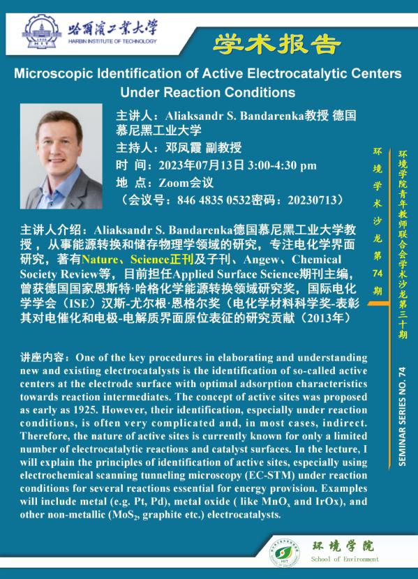 德国慕尼黑工业大学Aliaksandr S. Bandarenka教授将于2023年7月67月137月27与在线成人 师生进行系列学术交流,本期将开展的是“Microscopic Identification of Active Electrocatalytic Centers Under Reaction Conditions”主题的报告,欢迎感兴趣的师生参加线上学术报告会。