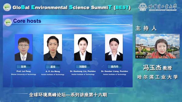 BEST第十六期主持团包括BEST论坛的主席、在线成人 院长冯玉杰教授、在线成人 副院长邢德峰教授、武汉理工大学资源与环境工程学院彭来教授、在线成人 孟佳副教授以及在线成人 刘国宏博士、梁丹丹博士。报告正式开始前,冯玉杰教授对本期讲座嘉宾进行介绍,表达了主办方对袁志国院士的诚挚感谢,也表达了对来自全球观众的热烈欢迎。