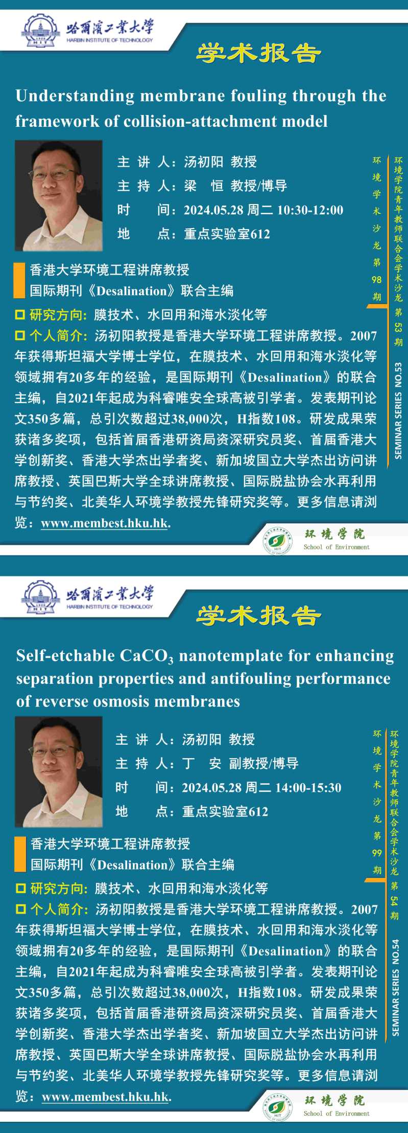 报告题目:1、Understanding membrane fouling through the framework of collision-attachment model